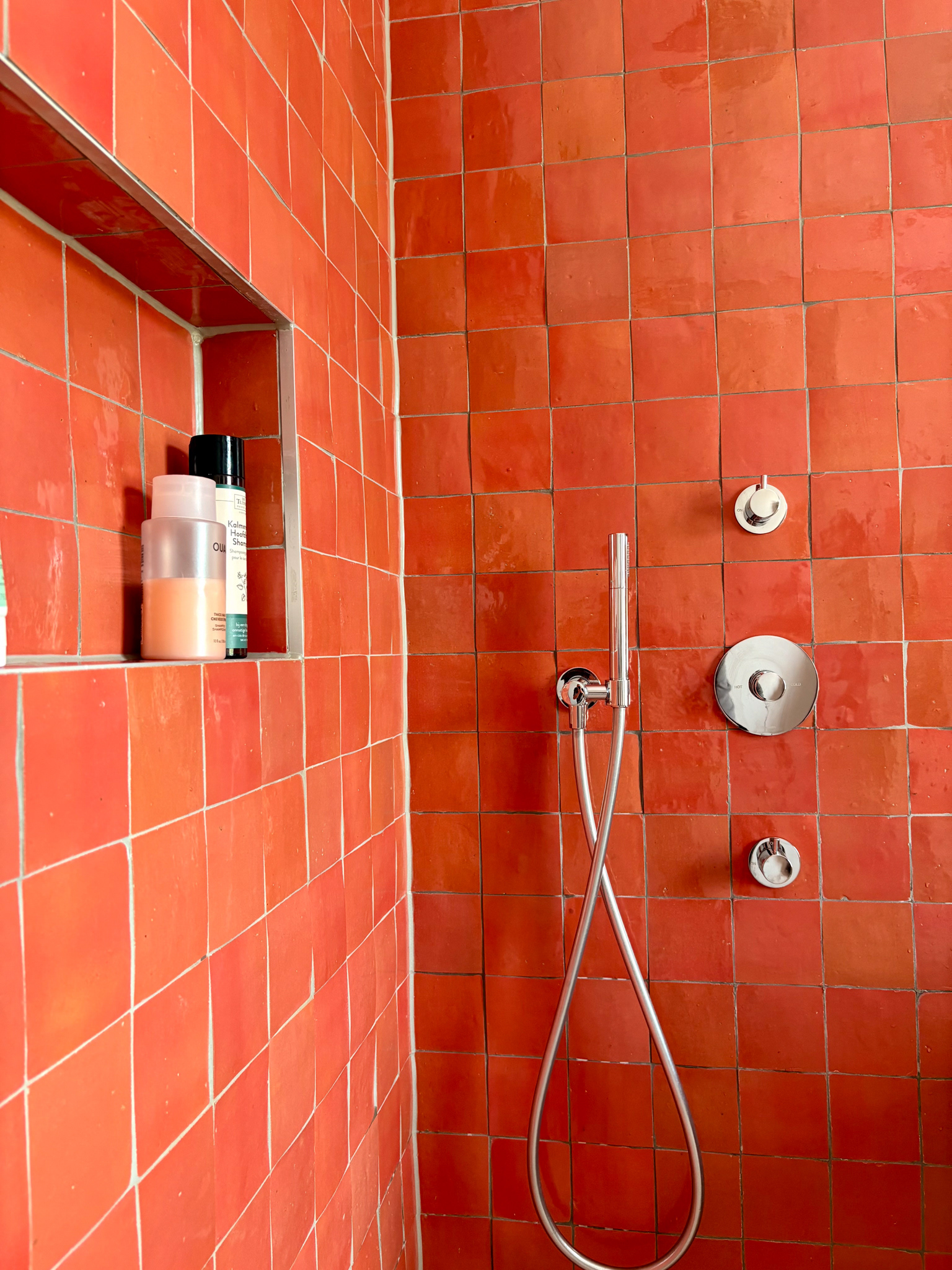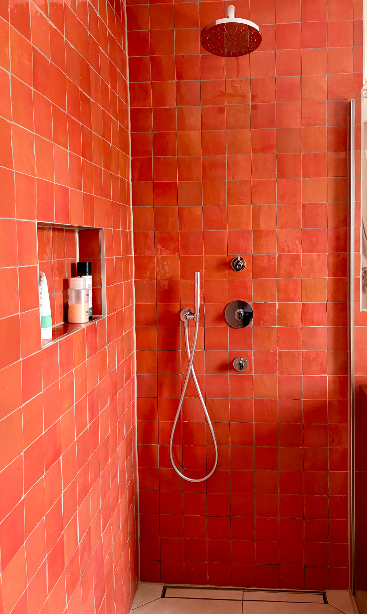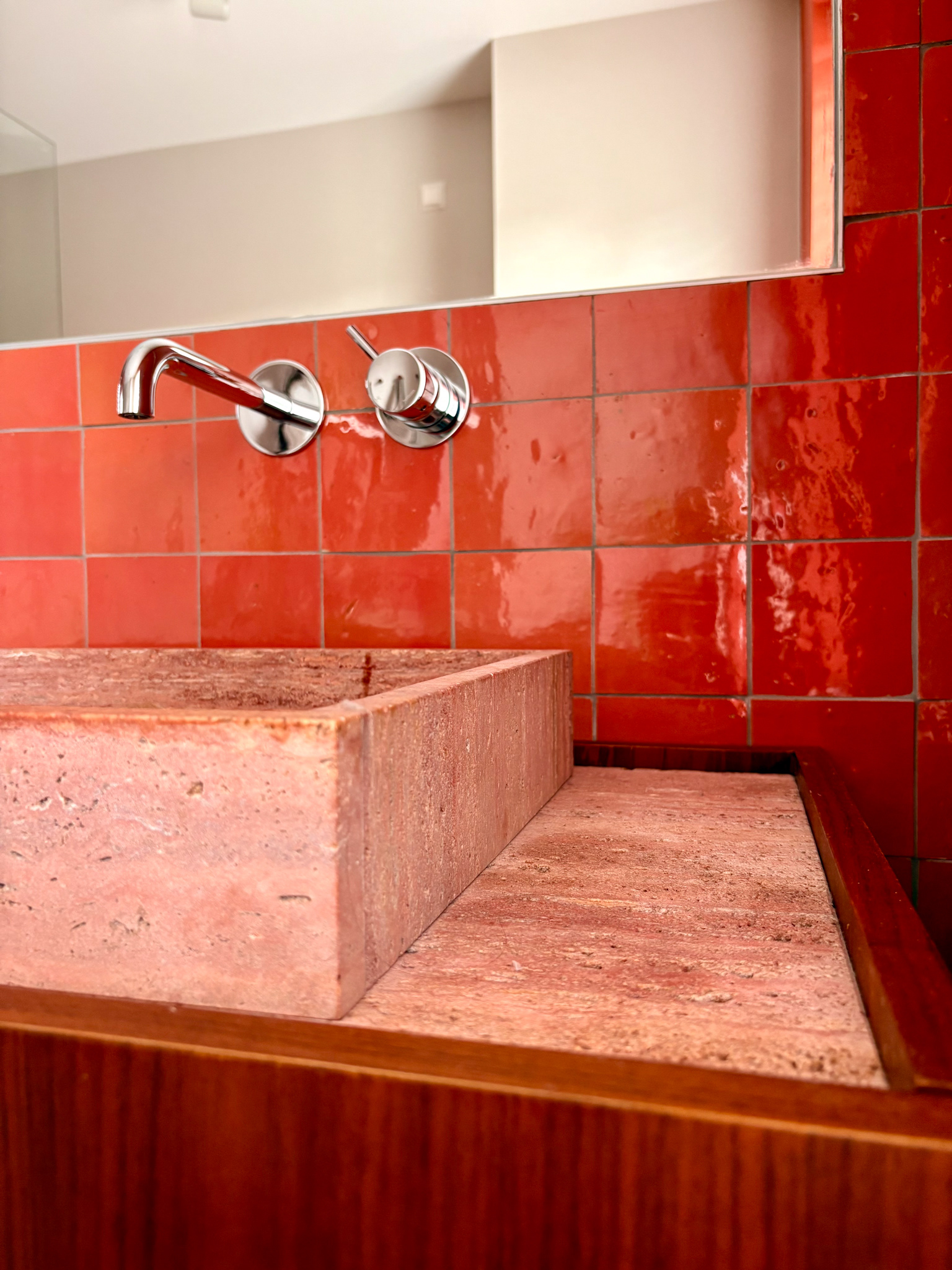 Bathroom renovation for a young family in Barendrecht. A calm and spatial but colorful bathroom with natural and authentic materials.